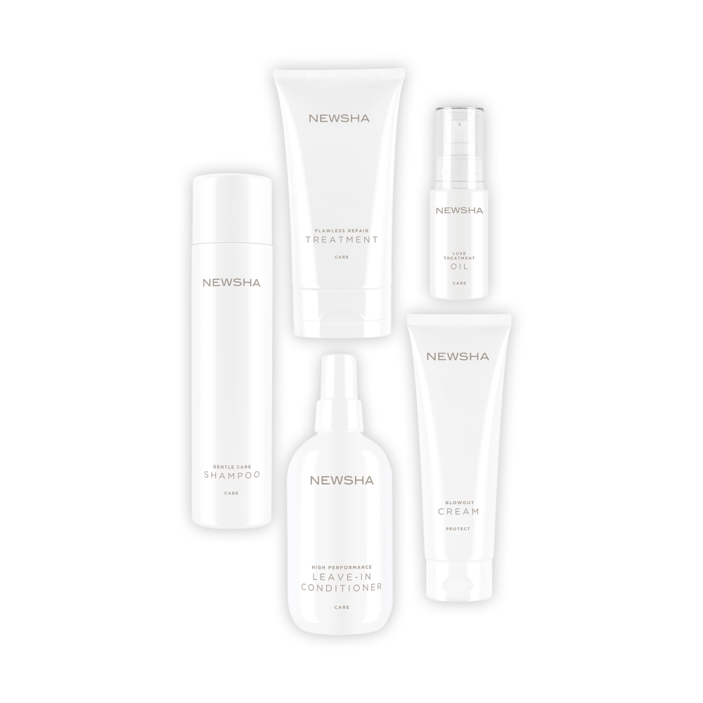 Sanfte Shampoos, die schonend, natürlich und effektiv reinigen. Treatments, die selbst zerstörtes Haar wieder in eine seidige Mähne verwandeln. Stylingprodukte für einen glamourösen oder casual Look, exklusive In-Salon-Treatments sowie eine mit Superfood angereicherte Haarfarbe, die durch ihre diamantengleiche Leuchtkraft überzeugt. Perfekt gepflegtes Haar – das ist NEWSHA.